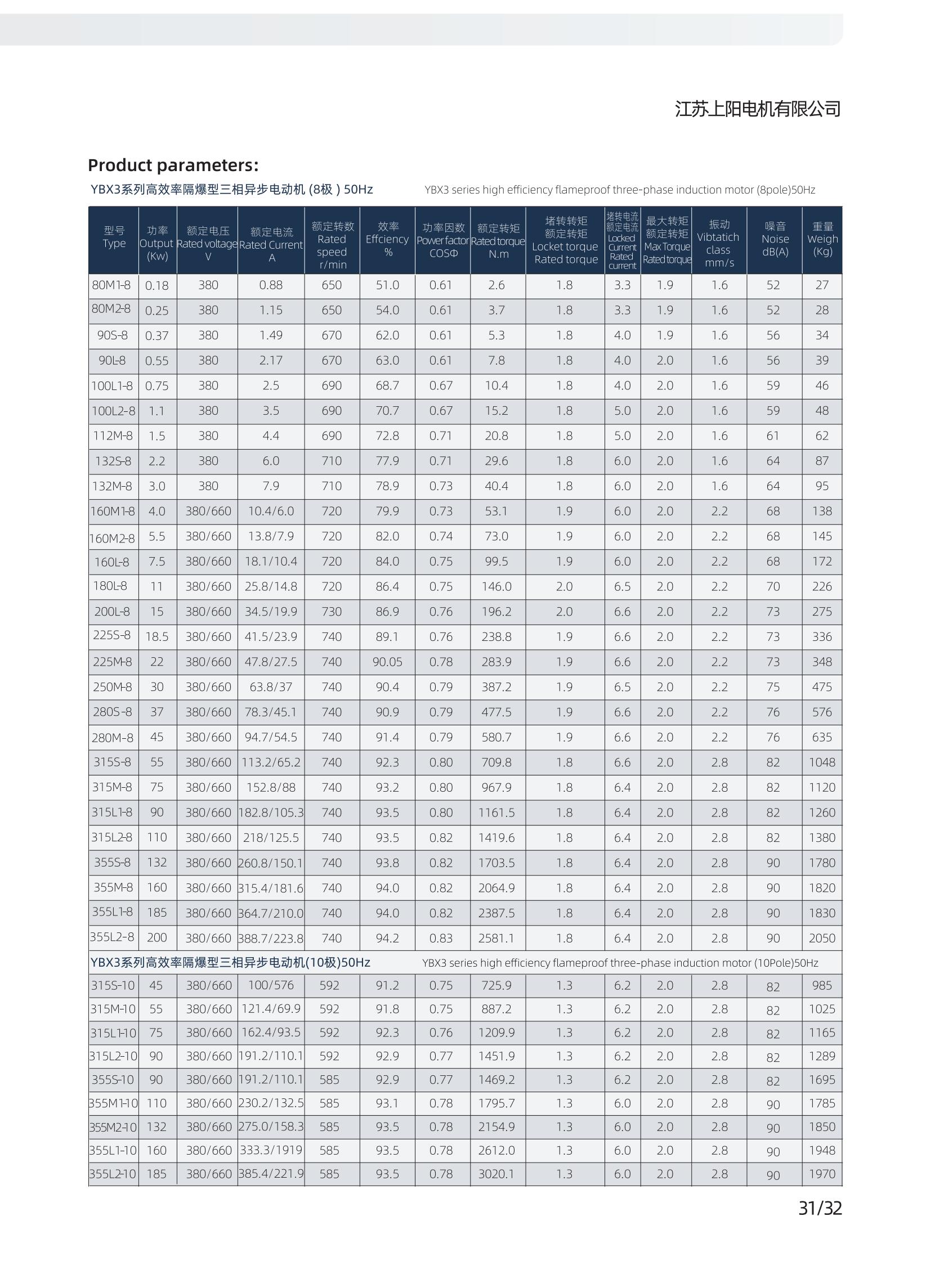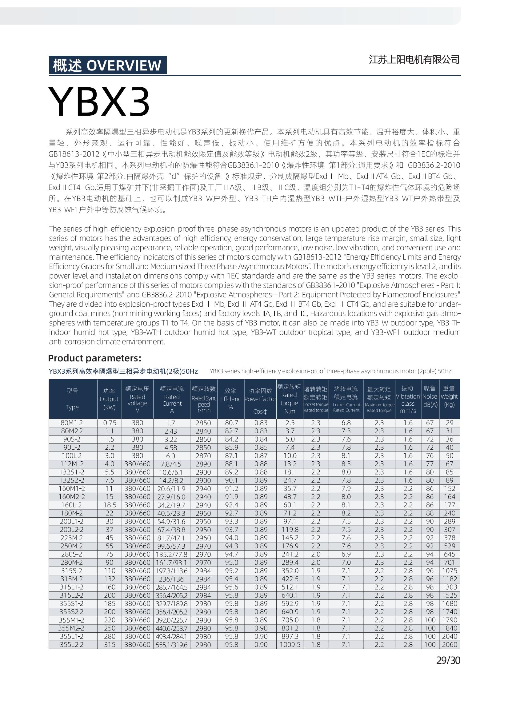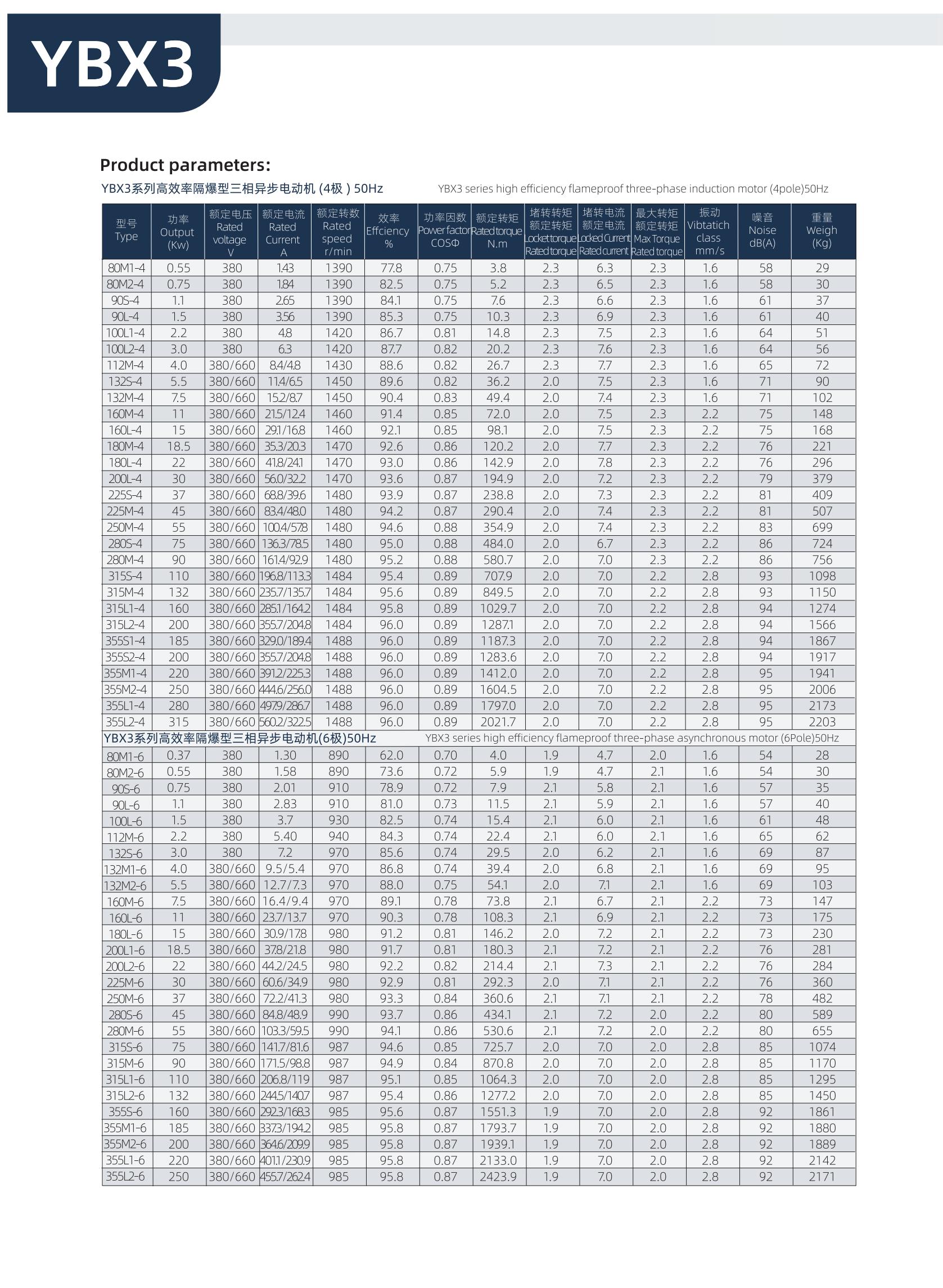 YBX3系列高效率隔爆型三相異步電動(dòng)機(jī)是YB3系列的更新?lián)Q代產(chǎn)品。本系列電動(dòng)機(jī)具有高效節(jié)能、溫升裕度大、體積小、重量輕、外形美觀、運(yùn)行可靠、性能好、噪聲低、振動(dòng)小、使用維護(hù)方便的優(yōu)點(diǎn)。本系列電動(dòng)機(jī)的效率指標(biāo)符合GB18613-2012《中小型三相異步電動(dòng)機(jī)能效限定值及能效等級(jí)》電動(dòng)機(jī)能效2級(jí),其功率等級(jí)、安裝尺寸符合IEC的標(biāo)準(zhǔn)并與YB3系列電機(jī)相同。 本系列電動(dòng)機(jī)的防爆性能符合GB3836.1-2010《爆炸性環(huán)境 第1部分:通用要求》和 GB3836.2-2010《爆炸性環(huán)境 第2部分:由隔爆外殼“d”保護(hù)的設(shè)備 》標(biāo)準(zhǔn)的規(guī)定,分別制成隔爆型Exd I Mb、ExdⅡBT4 Gb、ExdⅡBT4 Gb、ExdICT4 Gb,適用于煤礦井下(非采掘工作面)及工廠ⅡA、ⅡB、ⅡC級(jí),溫度組分別為T1~T4的爆炸性氣體環(huán)境的危險(xiǎn)場所。 在YB3電動(dòng)機(jī)的基礎(chǔ)上,也可以制成YB3-W戶外型、YB3-TH戶內(nèi)濕熱型、YB3-WTH戶外濕熱型、YB3-WT戶外熱帶型及YB3-WF1戶外中等防腐蝕氣候環(huán)境。