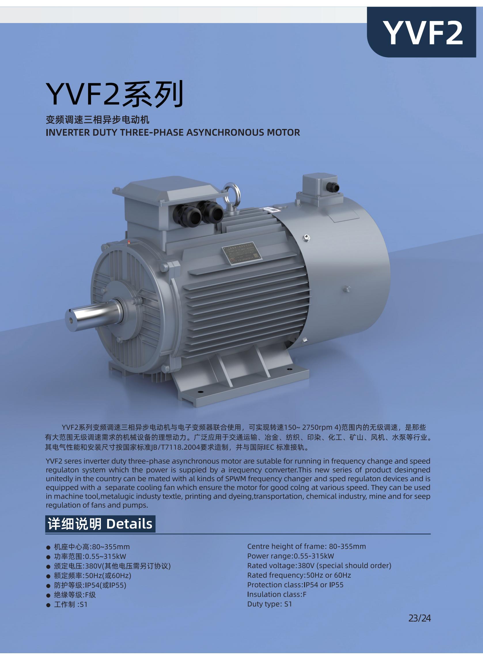 YVF2系列變頻調(diào)速三相異步電動機(jī)與電子變頻器聯(lián)合使用,可實現(xiàn)轉(zhuǎn)速150~2750rpm(4極)范圍內(nèi)的無級調(diào)速,是那些有大范圍無級調(diào)速需求的機(jī)械設(shè)備的理想動力。廣泛應(yīng)用于交通運(yùn)輸、冶金、紡織、印染、化工、礦山、風(fēng)機(jī)、水泵等行業(yè)。其電氣性能和安裝尺寸按國家標(biāo)準(zhǔn)JB/7118-2004要求造制,并與國際IEC標(biāo)準(zhǔn)接軌。